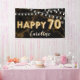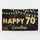 This banner features gold foil balloons and string lights on a black background. Personalise it with a name.