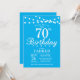 70th Birthday Invitation with String Lights. Blue Background. Men or Women Birthday. 13th 15th 16th 18th 20th 21st 30th 40th 50th 60th 70th 80th 90th 100th, Any age. For further customisation, please click the "Customise it" button and use our design tool to modify this template.