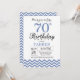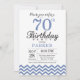 70th Birthday Invitation with Blue Chevron. Black and White. Adult Birthday. Man or Women Bday Invite. For further customisation, please click the "Customise it" button and use our design tool to modify this template.