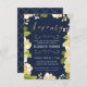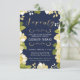This modern and pretty seventieth birthday invitation features an illustrated floral border and the word "seventy" in gold. The background is a navy blue colour, but can be customised to any colour you choose. The back of the invite includes a gold quatrefoil pattern with a matching blue background that can also be swapped out. The text is customisable for your special milestone birthday celebration event.