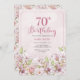 Lovely traditional 70th Birthday invitation with a floral patterned background.