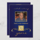 Personalised 70th Birthday Party Invitations with custom photo -- Elegant masculine blue birthday invitations with decorative gold accents and monogram. Add your own photo and customise the name, date, and details for any year or any happy occasion. Perfect for both contemporary or vintage photos. Matching postage and thank you cards available. **NOTE: Sized for standard 5 x7 invitation cards. Click "CUSTOMIZE IT" to change the size. Other colours and styles available in gallery.