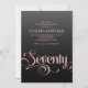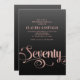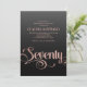 Set the tone for a chic celebration with our elegant black and rose gold 70th birthday invitation. Featuring bold, retro typography and a sleek design, this invitation exudes a glamourous and stylish vibe—perfect for a women's 70th birthday party. Choose to order printed invitations or download digital invitations for instant access. Make this milestone birthday unforgettable—order your elegant birthday invitations now!