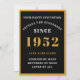 70th Birthday Name 1952 Elegant Chic Black Gold Invitation
