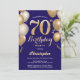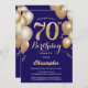 70th Birthday Navy Blue and Gold Balloons Confetti Invitation
