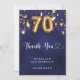 70th birthday navy blue gold stars thank you card