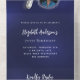 A navy blue background. The blue colour is uneven. Personalise and add a photo, name, party details, RSVP date, return address and name. Number 70 is written with a balloon style font in faux silver.