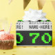 This fun and nerdy birthday-themed wrapping paper design features a large green vintage computer gaming style number "70" on a black coloured background. It also features the birthday greeting message "Happy 70th Birthday,", and a personalised name. Fun wrapping paper like this might be used to wrap seventieth birthday gifts or presents being given to an engineer, a computing historian, or somebody who really likes retro video games. [~Z0000403]