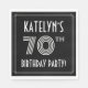 This 1920s-1930s style inspired seventieth birthday celebration/party paper napkin design features a customisable name, a fancy art deco look inspired number “70th”, the message “BIRTHDAY PARTY!”, and a multi-line border. The background is coloured black by default, but it can be customised to a different colour, if desired. Elegant birthday themed paper napkins like these might be used at a birthday party for somebody who is celebrating their 70th birthday. [~Z0000616]