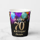 70th Birthday Party Black and Gold Colourful Balloons and Confetti Paper Cup. For further customisation, please click the "Customise it" button and use our design tool to modify this template.