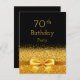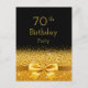 Elegant, classic, glamourous and feminine style party invitation. A faux gold coloured ribbon and bow with golden glitter and sparkle, a bit of bling and luxury for a birthday. Black background. With the text: 70th Birthday! on front