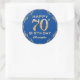 70th Birthday Party Blue and Gold Glitter Frame Classic Round Sticker