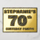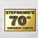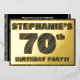 The front of this bold seventieth birthday celebration/party foil invitation card features a personalised name, a large number “70th”, the message “BIRTHDAY PARTY!”, and a border, all featuring a rustic, yet sophisticated, faux wood grain look inspired pattern. The back features personalised details about the event, such as the date, time, place/venue, and any other information that may be useful. Customised invitations like these might be used to invite guests/attendees to a birthday party being held to celebrate somebody’s 70th birthday. [~Z0000595]