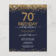 Elegant Faux gold glitter with shimmering confetti highlights on the top and bottom border. All text is adjustable and easy to change for your own party needs. Great elegant 70th birthday template design.