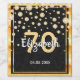 An elegant, glamourous and girly 70th birthday wine or sparkling wine bottle label. Black coloured faux glitter with faux golden diamond sprinkle and a golden frame. Templates for a name, age 70 and a date. Date of birth or the date of the party/anniversary. White and golden coloured letters. The name is written with a hand-lettered style script.