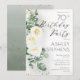 70th Birthday Party Elegant White Rose Eucalyptus Invitation