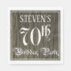 70th Birthday Party — Fancy Script, Faux Wood Look Napkin