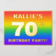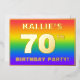 The front of this exciting seventieth birthday celebration foil invitation card design features an editable name, a large number “70th”, the message “BIRTHDAY PARTY!”, and a border. The background of the front has a fun, multicolored, rainbow spectrum inspired gradient pattern. The back features personalized details about the event, such as the date, time, location/venue, and any other information that may be useful. Personalized invitations like these might be a fun way to invite guests/attendees to a birthday party/gathering being held to celebrate somebody’s 70th birthday. [~Z0000599]