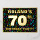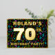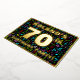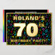 The front of this joyful and fun seventieth birthday party foil invitation card design features a personalised name, a large number “70th”, the message “BIRTHDAY PARTY!”, and a border. The background of the front has an exciting, multicolored pattern of musical notation symbols. The back features personalised details about the event, such as the date, time, venue, and any other information that may be important. Editable invitations like these might be a fun way to invite guests to a birthday gathering/party being held in celebration of somebody’s 70th birthday. These might be extra special if that person is a composer, a singer, a musician, a songwriter, or appreciates music. [~Z0000601]