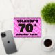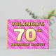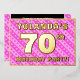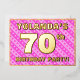 The front of this fun and joyful seventieth birthday party/celebration foil invitation card design features an editable name, a large number “70th”, the message “BIRTHDAY PARTY!”, and a border. The background of the front features a loving dark pink and light pink stripes pattern, with heart shapes. The back features personalised details about the event, such as the date, time, place/venue, and any other information that may be useful. Customised invitations like these might be a fun way to invite guests/attendees to a birthday gathering being held in celebration of somebody’s 70th birthday. [~Z0000603]