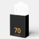 Elegant, classic, glamourous and girly for a 70th birthday party. A chic black background. Decorated with faux gold glitter drips, paint dripping look. Personalise and add a name. With the text: Thank You plus the birthday girls name. The name is written with a modern golden coloured hand lettered style script with swashes. Number 70 is written with a balloon style font.