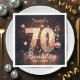 Celebrate a milestone seventieth birthday in style with these custom "70th Birthday" paper napkins. This vibrant design features a sleek black background illuminated by a festive arrangement of gold musical notes, a shimmering disco ball, and floating stars. The centerpiece is a large number "70" filled with a faux sequin and mosaic effect that gives the appearance of sparkling glitter (printed effect only).