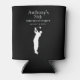 70th Birthday party can cooler. Black and white, classic, simple, modern, elegant, golfer, can cooler. Personalise it with your details.