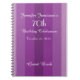 This 70th Birthday Party Guest Book spiral notebook is decorated with a purple striped pattern. Easy to customise, just CHANGE or delete EXAMPLE Name and Age. All Rights Reserved © 2014 Alan & Marcia Socolik.