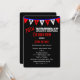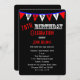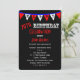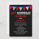 This fun 70th birthday party invitation in red, white and black features flags along the top in red and white with HAPPY spelled in the flags. The words 70th BIRTHDAY Celebration are below the flags, as are your birthday party details. This is a nice modern typography invite to a 70th birthday celebration. Copyright henishouseofpaper