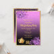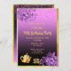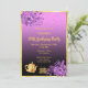 A feminine and chic invitation card for a 70th birthday tea party. Glamourous with elegant and modern black and pink, purple gradient, ombre backdrop and confetti rain. With ultra violet and purple coloured watercolored flowers, a faux gold teapot and a golden tea cup. Template for name and party details.