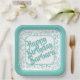 70th Birthday Party Number Pattern Teal White Paper Plate
