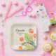 70th Birthday Party Parakeet with Tulips Paper Plate