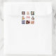 A sticker for a girly 70th birthday party, celebrating her life with a collage of 8 of your photos. Templates for a name, age 70 and a date. Date of birth or the date of the party. Coral and burgundy coloured letters. White background.