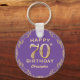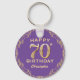 70th Birthday Party Purple and Gold Glitter Frame Key Ring