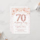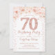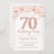 70th Birthday Party Invitation for Women. Elegant floral design in blush pink, white and faux glitter rose gold. Features dusky pink roses and diamond font. Perfect for a stylish milestone adult birthday celebration