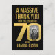 Seventieth birthday photo elegant and simple gold on black thank you card . Great idea for adding some stylish simple thanks to your 70th birthday party favor bags or to send after your party as a thank you note. Personalize with your own photo in the 0 of 70. Can be personalized with your own name and wording, currently reads A massive thank you for celebrating 70 years with Joanna Olson. Other matching items are available and can be created by request. Unique gold 70 graphic by www.mylittleeden.com