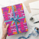 Pink, golden yellow and purple 70th birthday add your own photo wrapping paper. Add your own seventieth birthday photo to the 0 of 70 and customise with the birthday message / name of your choice. Currently reads Happy Birthday Charlotte 70 legendary years. A great way to customise your birthday gifts. Unique design by Sarah Trett www.sarahtrett.com