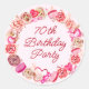 70th Birthday Pink Rose Swirly Heart Envelope Classic Round Sticker