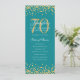 70th Birthday Program Gold Turquoise Confetti Menu Invitation