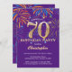 70th Birthday Purple and Gold Rainbow Fireworks Invitation