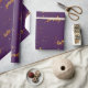 Elegant and modern for a 70th birthday gift. Girly purple backdrop and faux gold text written with a trendy hand-lettered style script: hello seventy. With golden dots as decor.