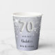 For a glamourous and girly for a 70th birthday party. A faux silver metallic looking background. On the front and the back: Personalise and add a name and a date. Decorated with faux glitter dust.