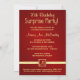 Contemporary, modern and elegant Surprise Party invitations for women or men -- Rich red and gold champagne glass. Customise the name, date, and details for this special occasion. Change the year for other special birthdays -- 21st, 25th, 30th, 40th, 45th, 50th, 55th, 60th, 70th, 75th, 80th, 85th, 90th, 100th. Other milestone celebration styles, colours, and years available in gallery. Matching postage and thank you cards available.
