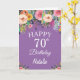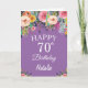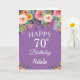 70th Birthday Watercolor Floral Flowers Purple Card with personalised name and age. For further customisation, please click the "Customise it" button and use our design tool to modify this template.