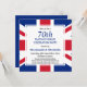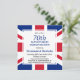 Stylish patriotic customisable 70th Platinum Celebration Union Jack invitation showing the UNION JACK of the UK on the front and plain BLUE background on the reverse. All text is CUSTOMIZABLE, so you can add your own details, eg. Platinum Jubilee Street Party, Wedding Anniversary, Milestone Birthday, Organisation's Anniversary, etc. There is additional placeholder information on the back, which can be replaced with information about your special event. Ideal for any BRITISH-themed celebration. Also suitable for other significant birthdays, anniversaries or milestones. Simply change the year and details after you click Customise Further. This patriotic British invitation can be used for private or public events, or by embassies and cultural centres, etc for National celebrations. Part of the UK Collection by Berean Designs. Other versions and flags available.
