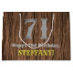 This country inspired and American Old West look birthday gift bag design features a large rustic look number "71", the message "Happy 71st Birthday,", a custom name, and a faux/imitation wood grain inspired look pattern background. A personalised birthday gift bag like this might be a fun way to wrap a present being given in celebration of somebody’s seventy-first birthday. [~Z0000470]