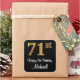 This stylish, sophisticated, and luxurious birthday-themed sticker design features a large ordinal number “71st” having an imitation/faux gold-inspired gradient pattern, in addition to the birthday greeting message “Happy 71st Birthday,” and a custom name in a script-style font. The background is coloured black. Elegant birthday themed stickers like this might be used when wrapping a gift or present being given to somebody who is celebrating their seventy first birthday, or perhaps may be given out to the attendees at a birthday celebration. [~Z0000517]