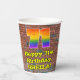 This vibrant and exciting urban street art and graffiti inspired birthday paper cup design features a large number “71” having a colourful rainbow spectrum gradient inspired pattern. It also features the message “Happy 71st Birthday,”, and a custom name. The background features a brick wall pattern. Vibrant, colourful paper cups like this might be fun to use at a birthday celebration/party being held to celebrate somebody’s seventy first birthday. [~Z0000543]