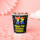 This cheerful and exciting birthday-themed paper cup design features a large number “71” having a rainbow spectrum gradient inspired pattern. It also features the message “Happy 71st Birthday,”, and a personalised name. The background features a colourful star field inspired pattern. Vibrant, colourful paper cups like this might be fun to use at a birthday party/celebration being held in celebration of somebody’s 71st birthday. [~Z0000540]