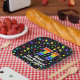 This fun and vibrant birthday themed paper plate design features a large number “71” with a rainbow spectrum gradient inspired pattern, along with the message “Happy 71st Birthday,”, and a personalised name. The background features a vibrant and colourful pattern inspired by a field of stars. Paper plates like this might be used when celebrating somebody’s 71st birthday. [~Z0000582]